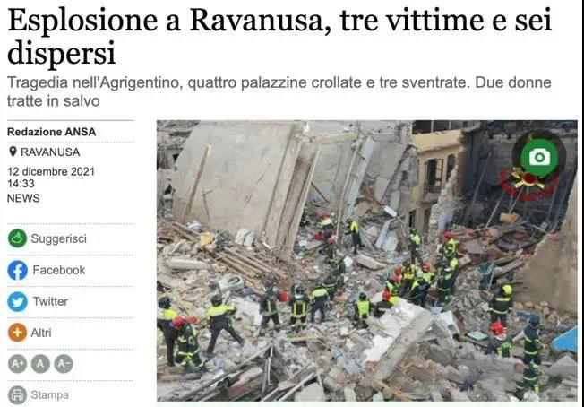 意大利發(fā)生一起天然氣管道爆炸事故